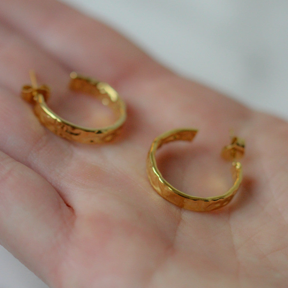 These beautiful "Banquet Hoops", is a half-creole with an ear stud that has a rough and uneven attack .