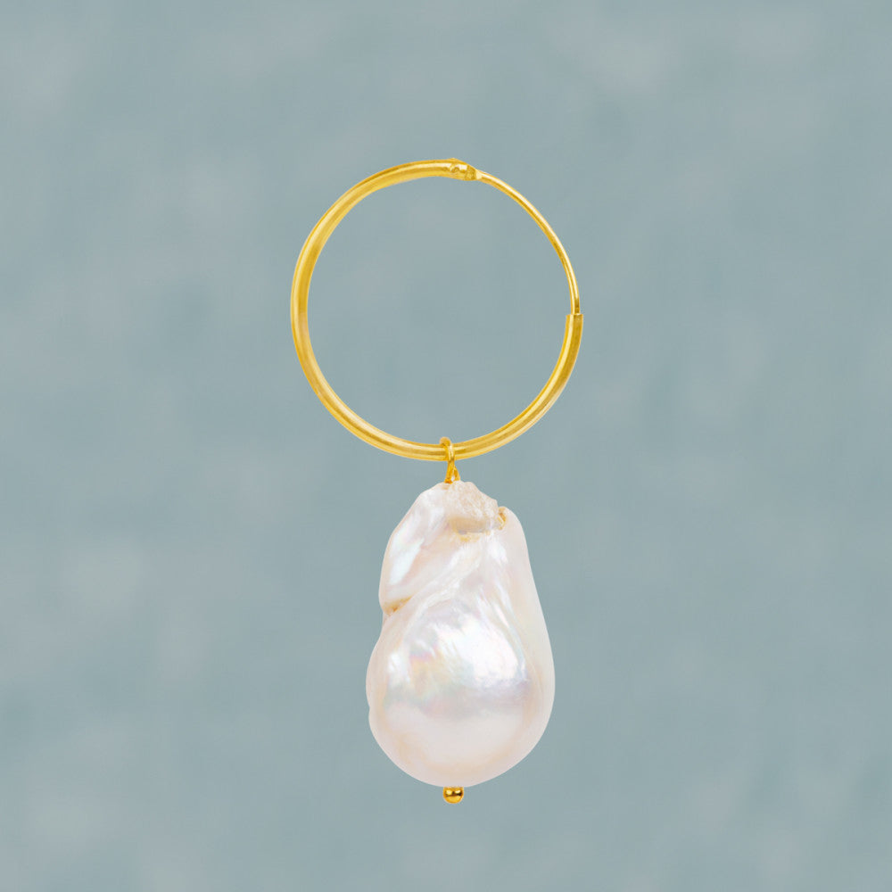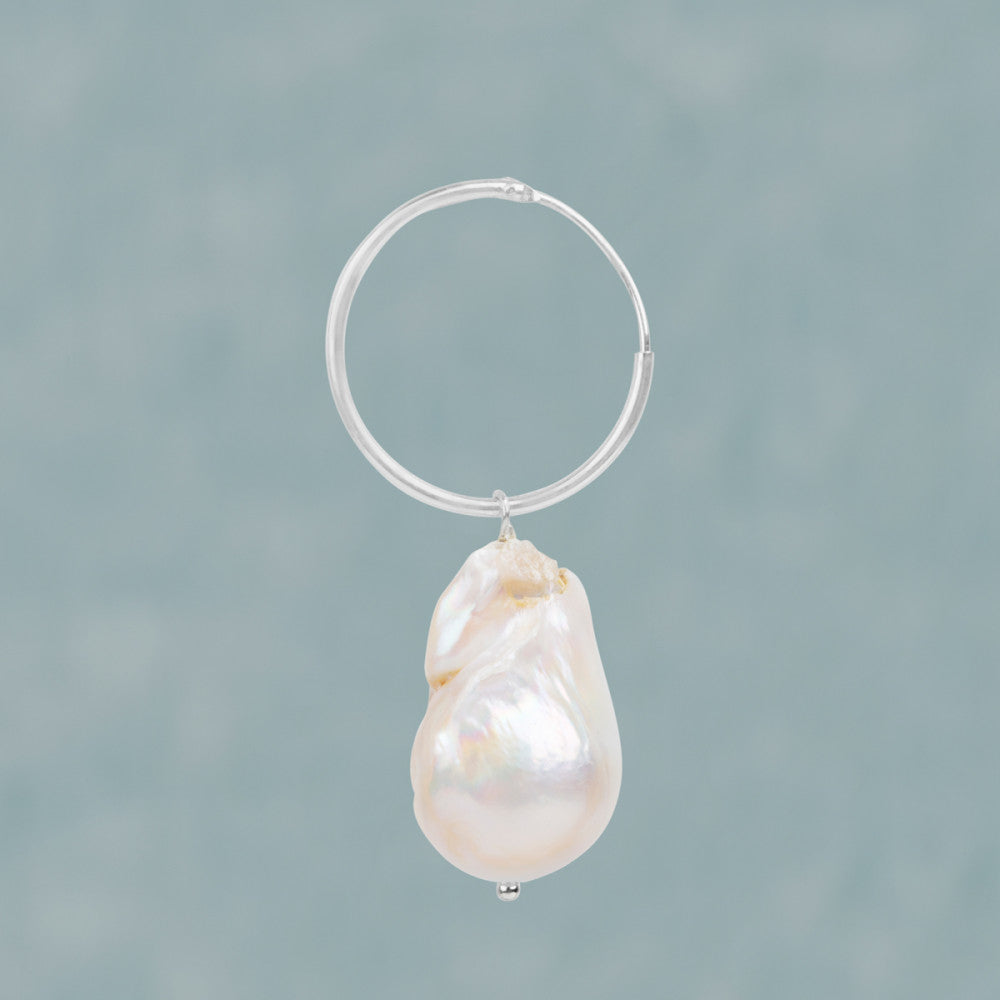 Our Baroque Chains // Hoops are available either as a classic hoop in 20 mm. or as a chain earring that has a pendant with a large and genuine Baroque freshwater pearl.