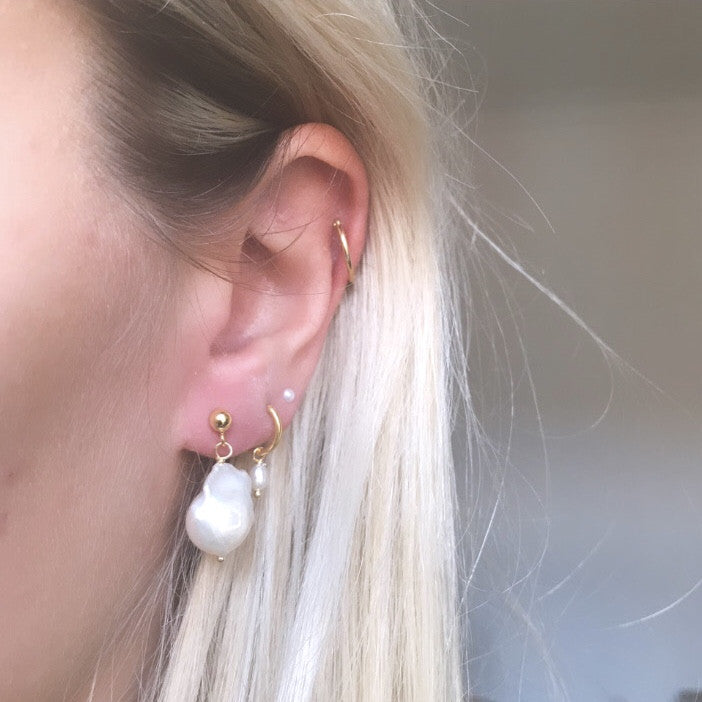 Our Barok Earstick features a large, genuine Baroque freshwater pearl, secured with an earstick. The butterfly clasp ensures they are easy to put on and take off, and their close fit makes them perfect for those who prefer smaller, less dangling earrings.