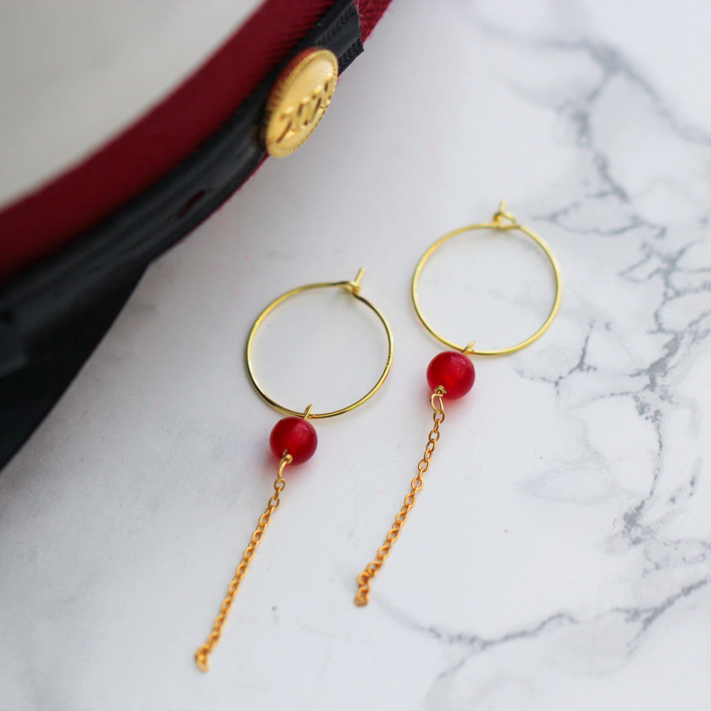 ubble Hoop // Student edition, is made from our popular Bubble Hoop, which is a fine earring with a beautifully colored jade stone and a fine loosely hanging chain.