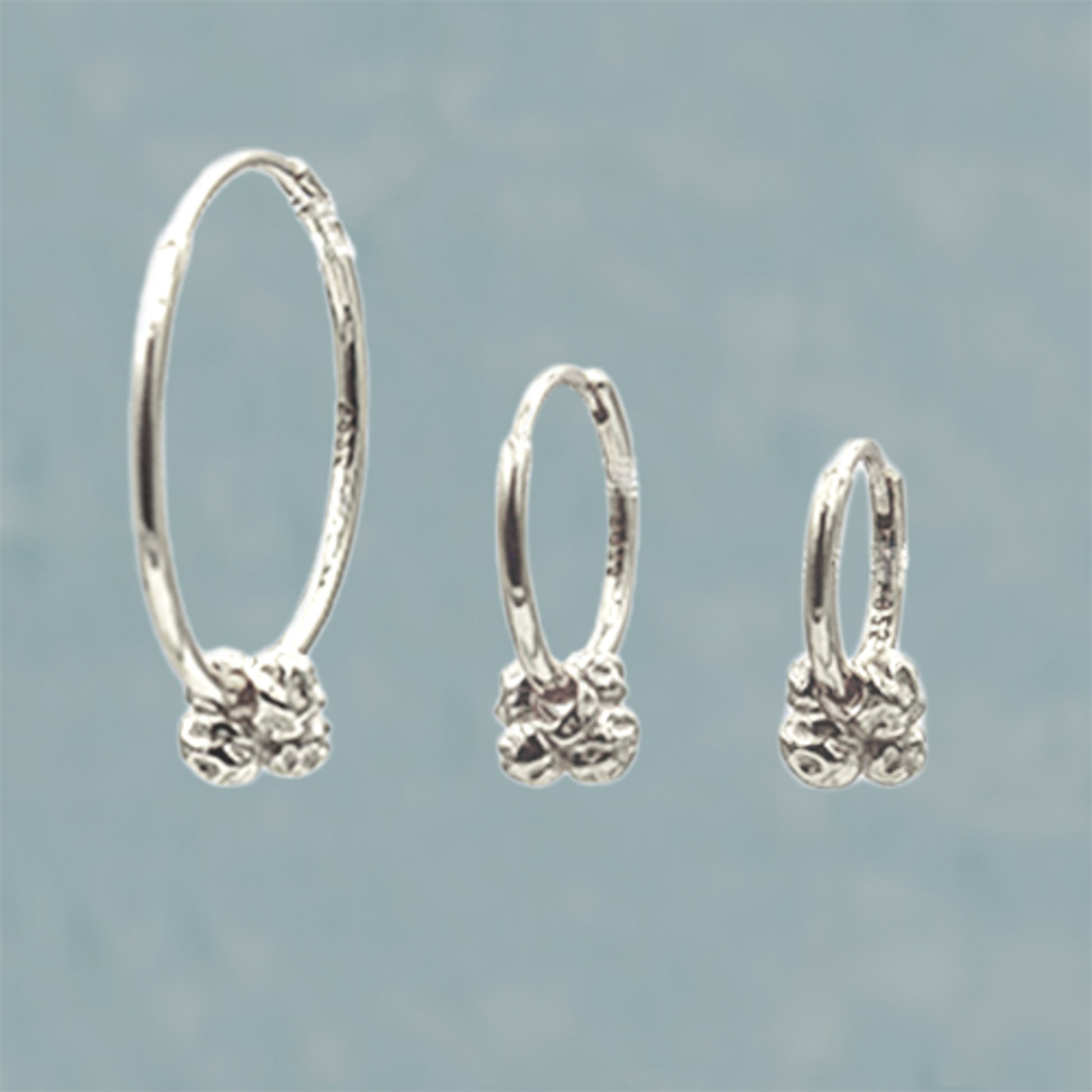 The picture shows a composition of our fine Crumble Hoops in the 3 different sizes (10 mm., 14 mm., 20 mm.).