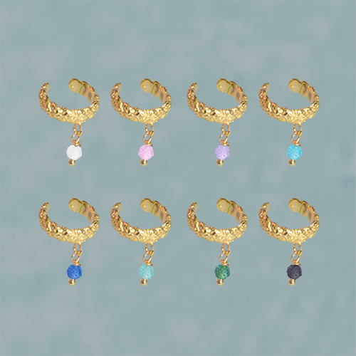 The earcuff is made of 18k gold-plated silver or 925 sterling silver and comes with dainty dangling zirconia stones at the bottom.