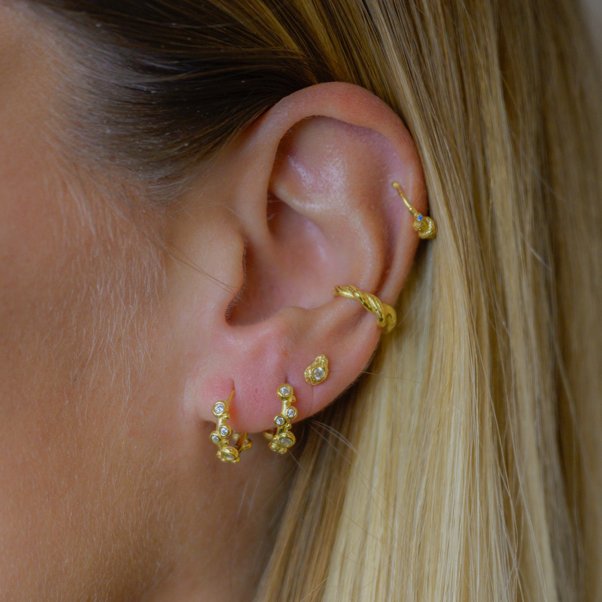 The hoop itself is made of 18k gold-plated silver or 925 sterling silver.