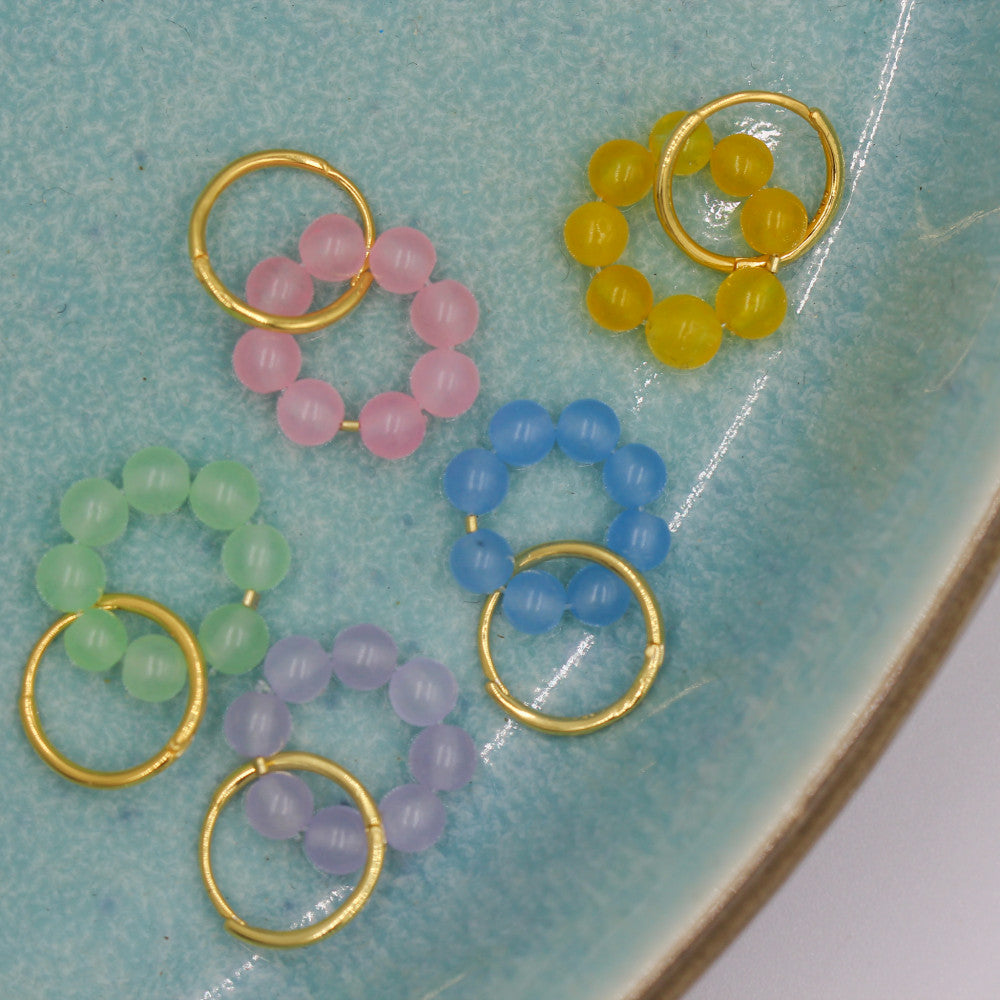 Finest Pastel Hoop in delicious pastel colours. Pastel Hoop is a new beautiful Hoop with two jade stones and a loosely hanging chain. A really nice way to spice up your outfit with a little color.