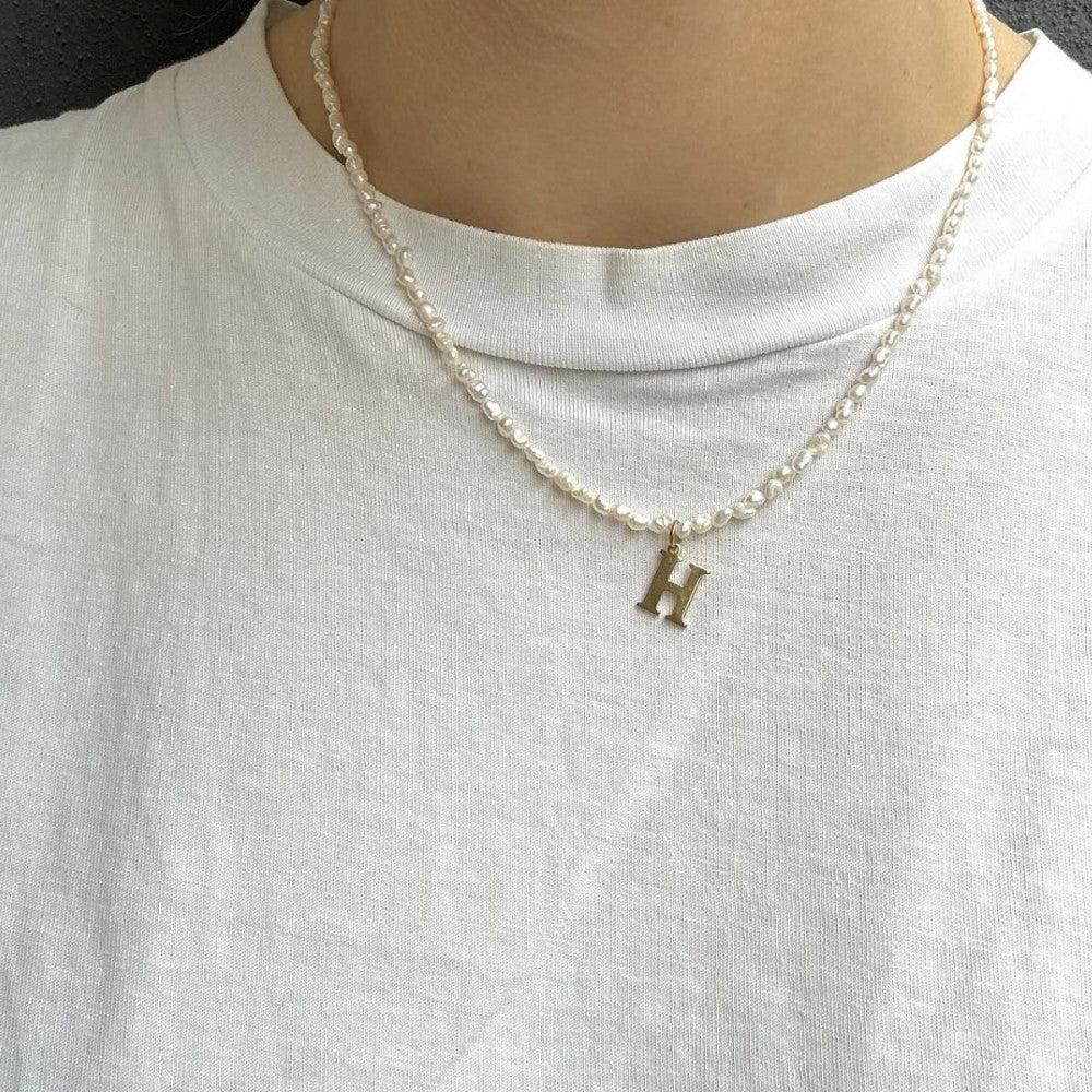 The picture shows a letter pendant attached to our Small pearl Necklace.