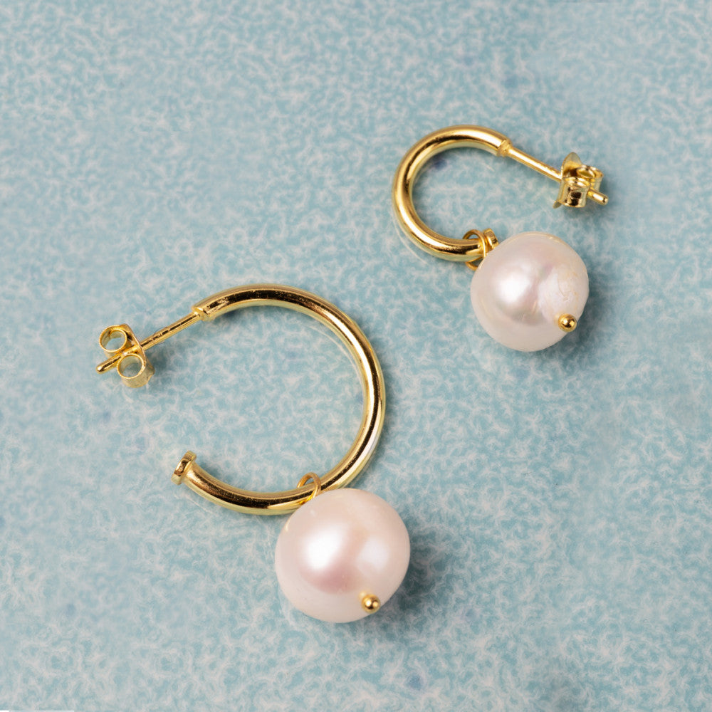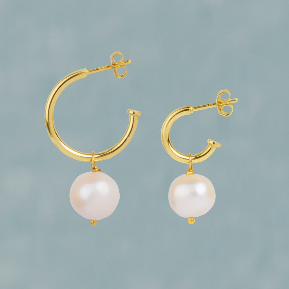 The Light Hoop is an elegant earring that combines a large freshwater pearl with a chunky semi-creole. From the front, it looks like a typical hoop, but it is equipped with an ear stud, making it easy to put on and take off.