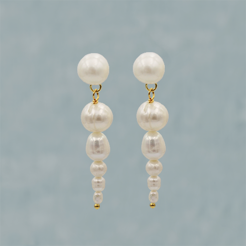 Long Pearls consists of an ear tick with a pearl, and with 5 freshwater pearls in different sizes as downward pendants.