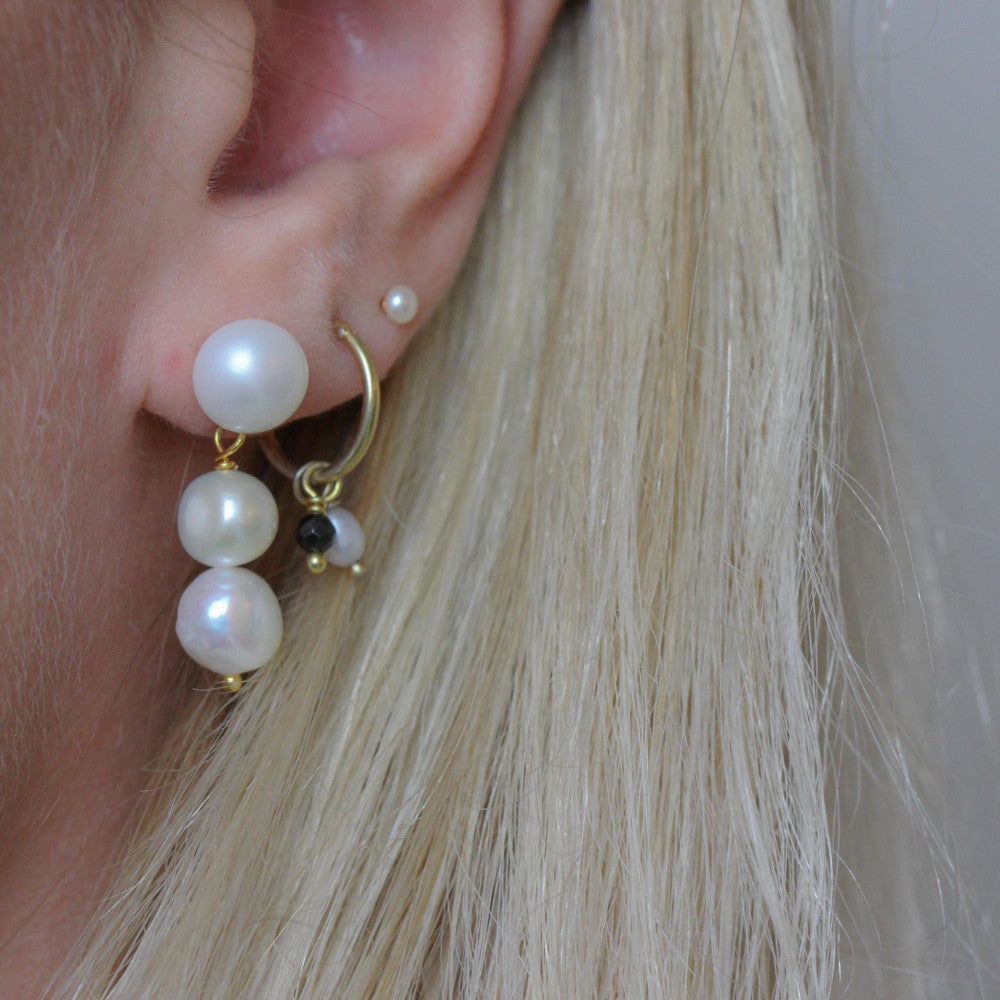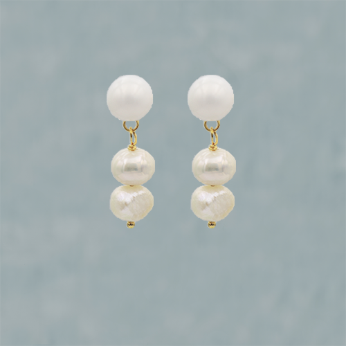 "Pearly Pearls" consists of a pearl ear stud in 7 mm. which has 2 freshwater pearls in its pendant.