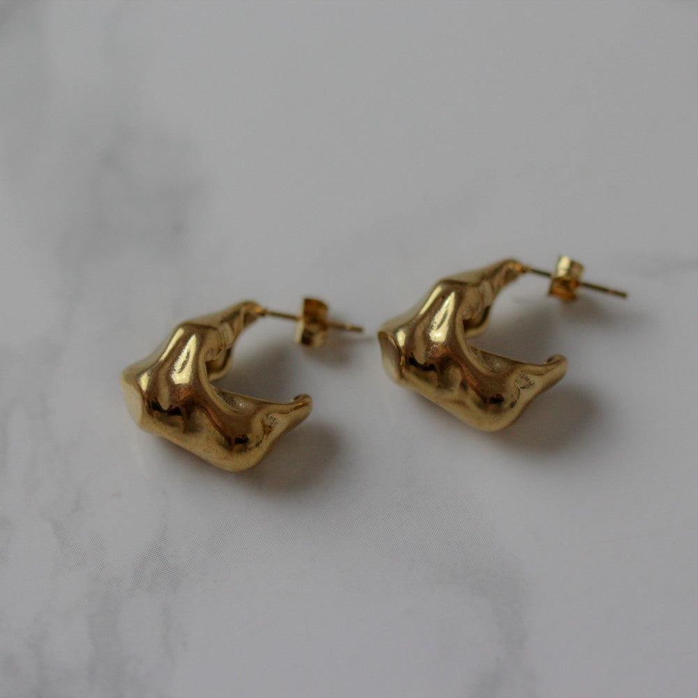 The earring is made of 18k gold-plated stainless steel (the same material as our finger rings). This material is a completely pure material to which the gold binds. This is why these pieces of jewelery are much more durable than gold-plated silver, and are therefore also what is called waterproof jewellery.