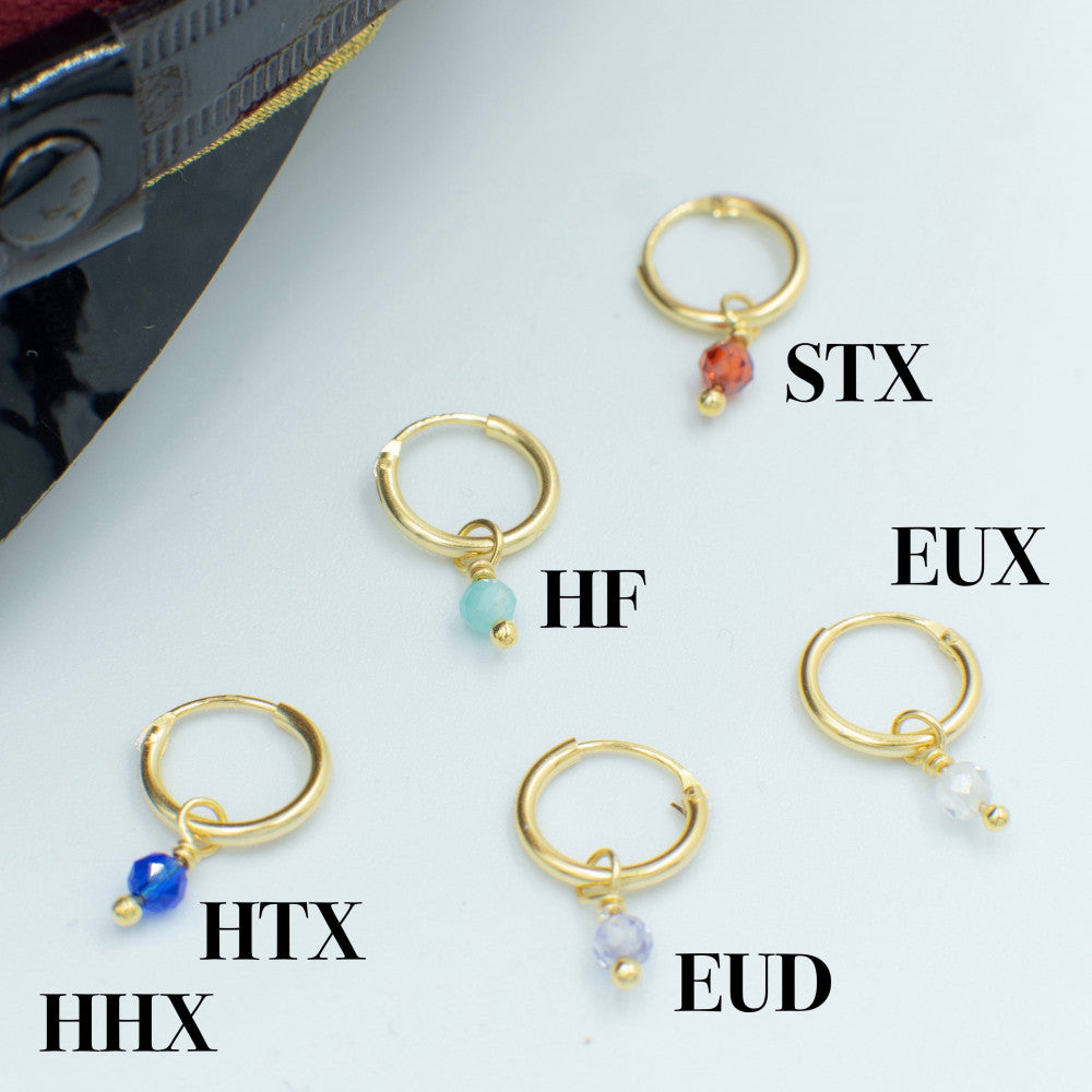 In the images, you can see our Second Hoop // Student edition paired with our other student earrings: Funky Hoop // Student edition, Tipi Chain // Student edition, and Crystal Chain // Student edition. Additionally, you'll find our regular Second Hoops // Crystal, available in all the colors of the rainbow.