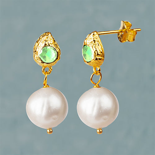 Introducing Sparkling Pearls, our latest earring design featuring a 4 mm stud adorned with a dazzling zircon. Available in Blue, Green, Pink, and Clear, this earring pairs the large zircon with a delicate 10 mm freshwater pearl below. These two distinct stones and pearls beautifully complement each other, creating a perfect harmony. The zircon on the earring radiates an absolutely fantastic shine.