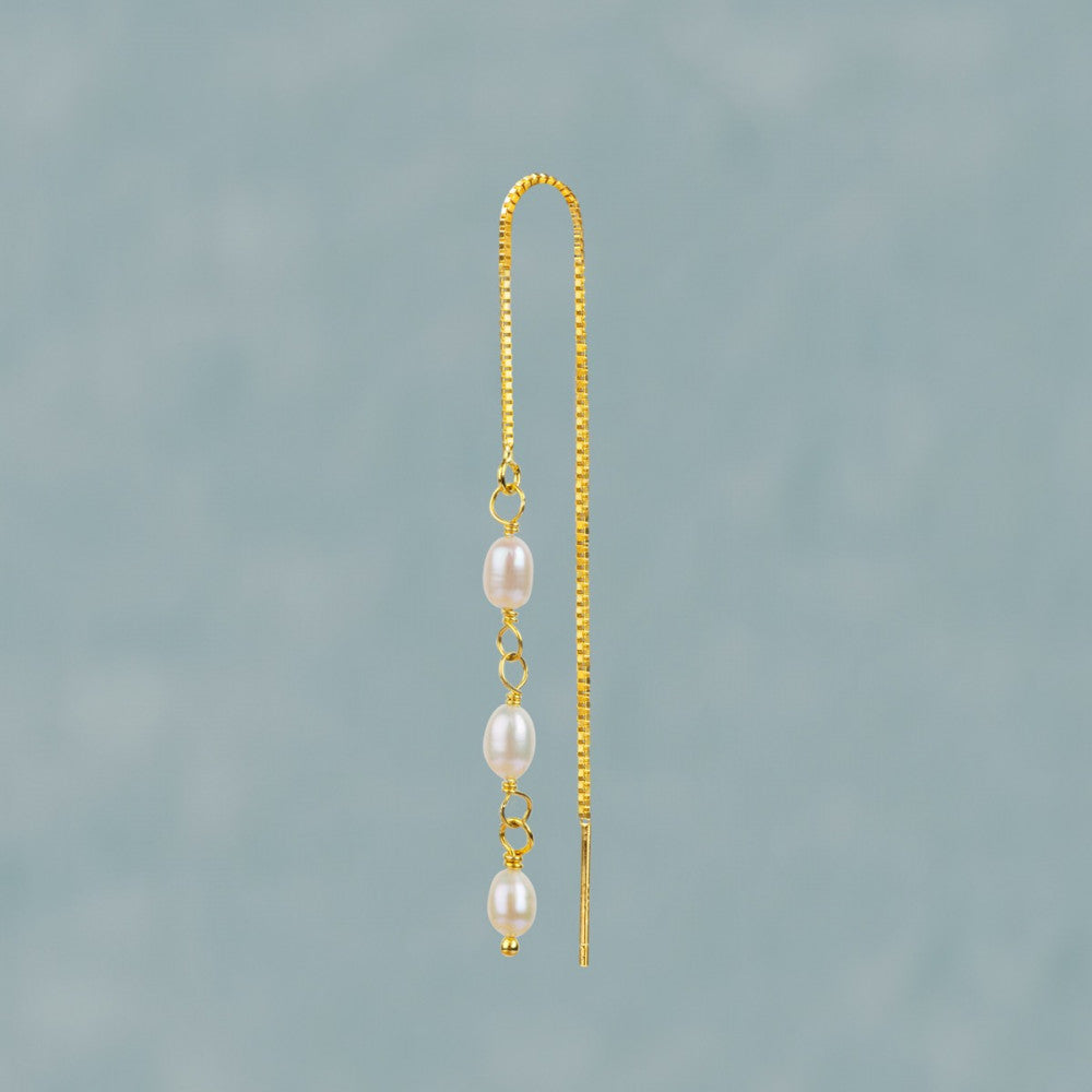 The earring is a chain earring, with three small freshwater pearls at the end, which are assembled by hand-made windings in 925 silver // 18k gold-plated wire. Tipi Chains are really nice on their own, but I often use them in combination with several of our designs.