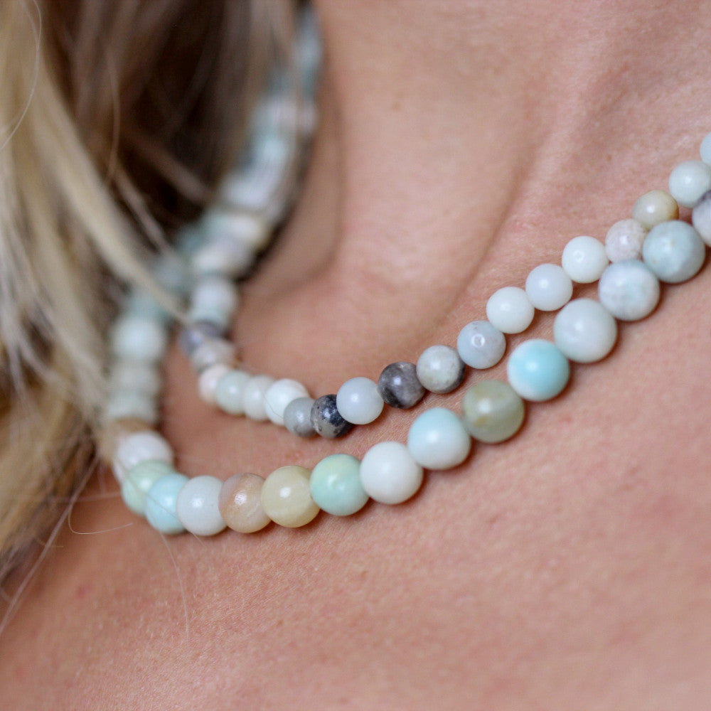 The second picture shows the Amazonite Necklace (8mm) together with the Pearly Necklace // Large.