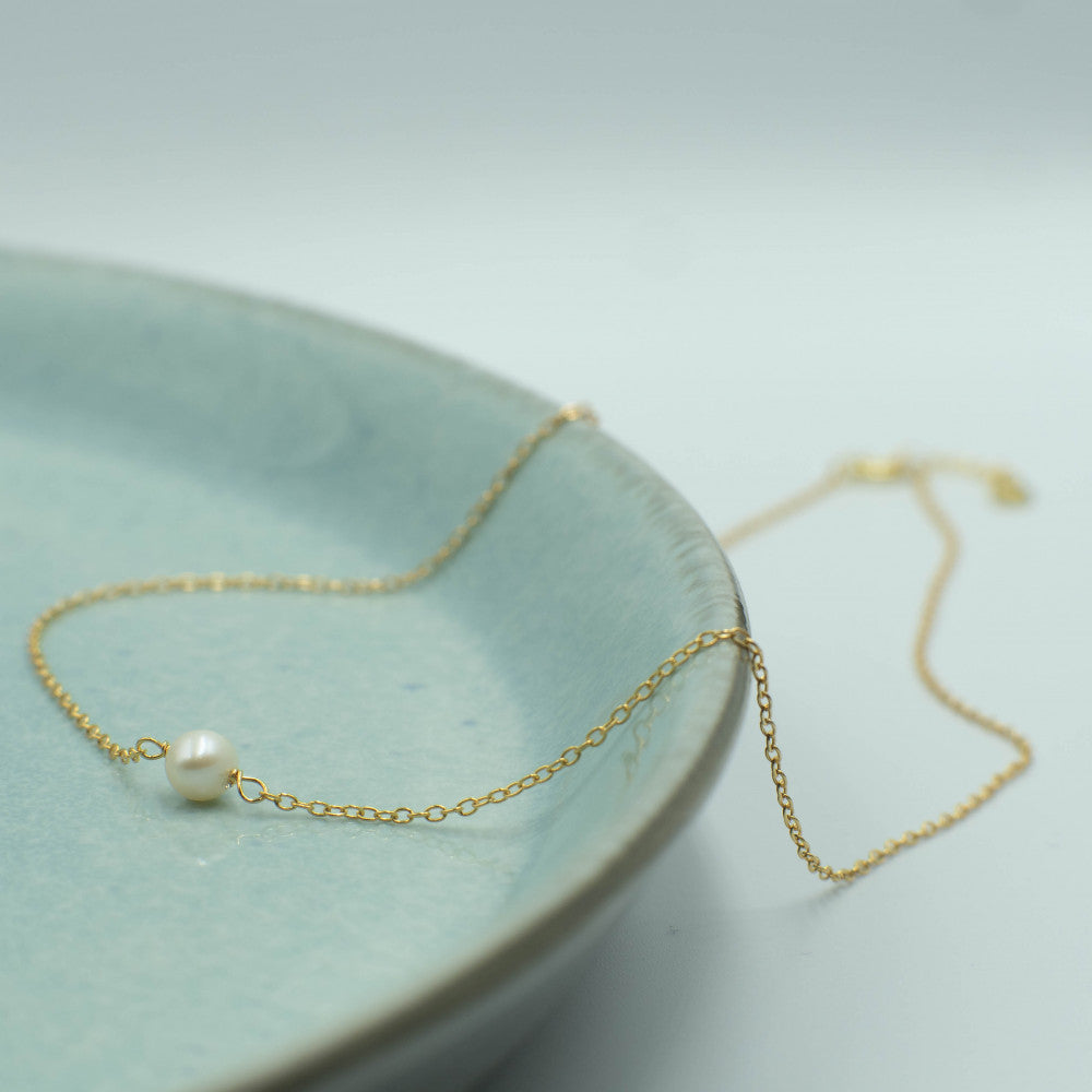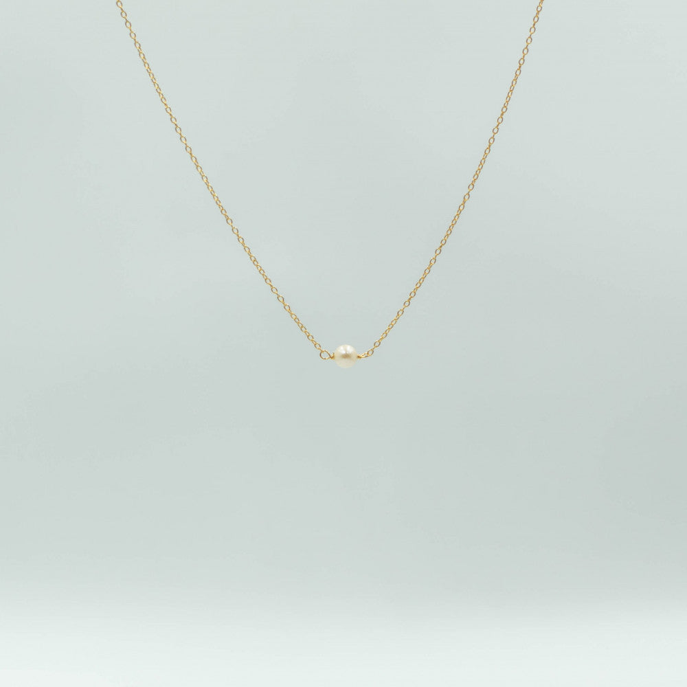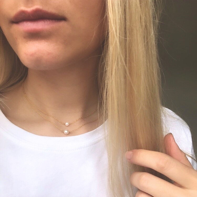 The Double Pearl Necklace is a simple necklace in a minimalist look which has a nice round freshwater pearl in the middle.