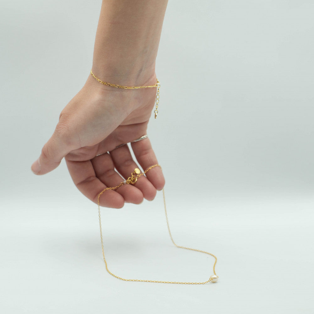 The necklace will go super well with other of our jewelery which also has freshwater pearls.