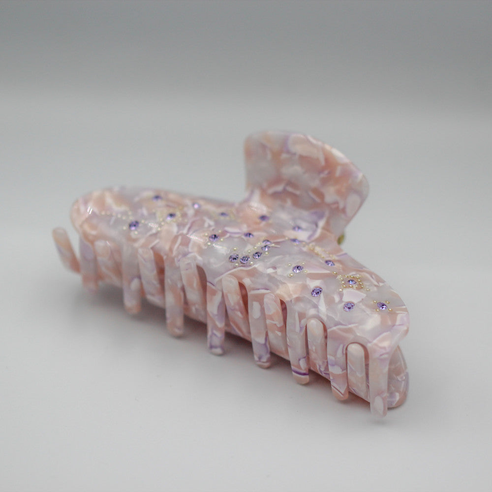 The Crystal Pink hair clip has the most beautiful pink and purple colors and attached individual small stones, which make the hair clip shine extra bright.