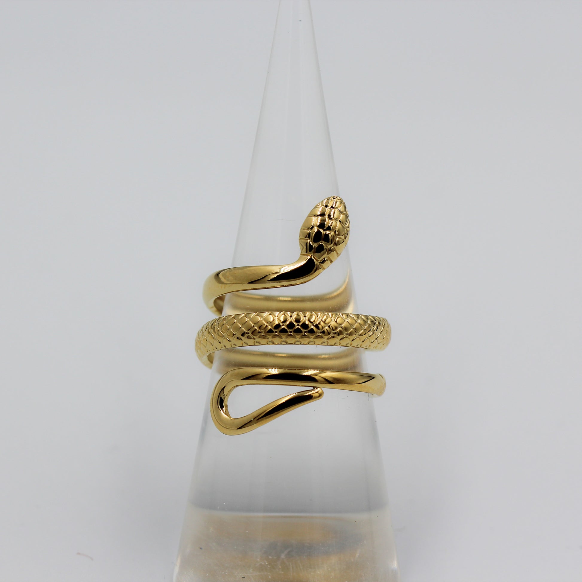 Check out our popular Wrapped Snake ring, which is our waterproof ring with a snake that elegantly wraps around the finger. A beautiful green stone adorns the top and adds a unique touch. This ring makes a great addition to your collection or can be worn alone as a statement piece.