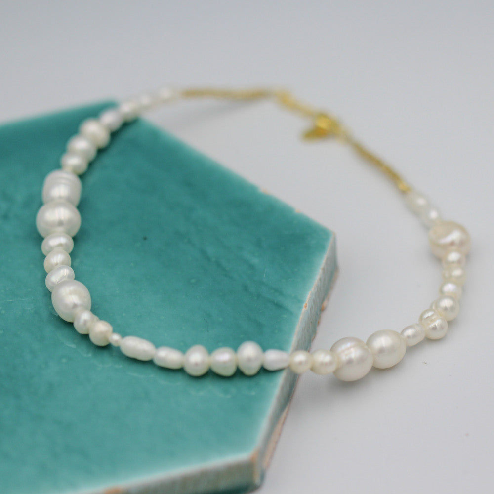 Pearly Anklet // Mixed is our new ankle chain, designed with a mix of different sizes of freshwater pearls. This elegant summer ankle chain can be worn alone or combined with other of our designs.