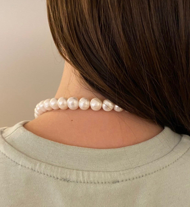 These freshwater pearls have an irregular appearance, with their flat sides and varying shapes, giving them a more rustic charm compared to traditional pearls.