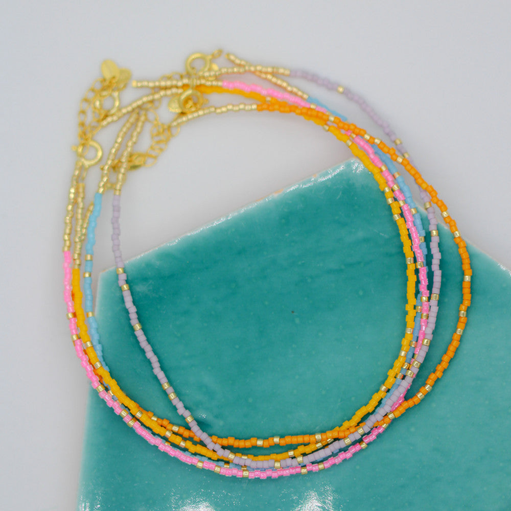 Simple Colorful Anklet is our completely colorful anklet, designed with beautiful Miyuki Delica pearls in delicious colors. These anklets are perfect for summer and can be worn alone or paired with other of our designs for a unique look.